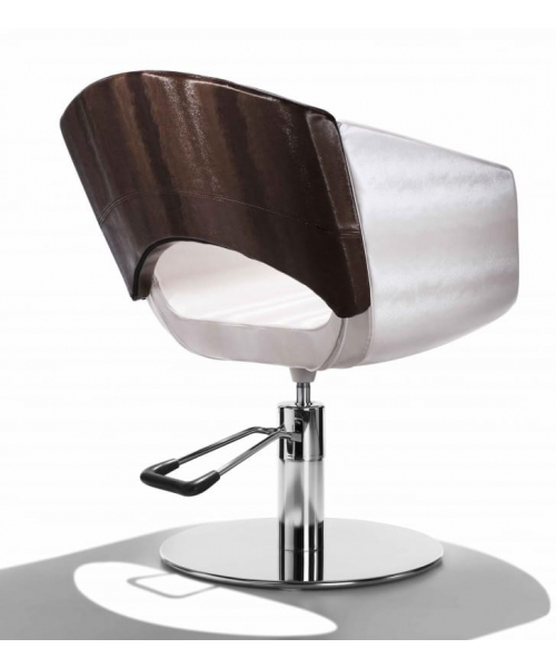 Кресло для клиента округлой формы выполнено из высококачественного поролона, каркас обтянут искусственной кожей. Комплектуется стационаром, пневматическим подъемником, гидроподъемником с основанием на выбор: пятилучье, диск, база из белого пластика. Возможен вариант с деревянной спинкой цвета венге.