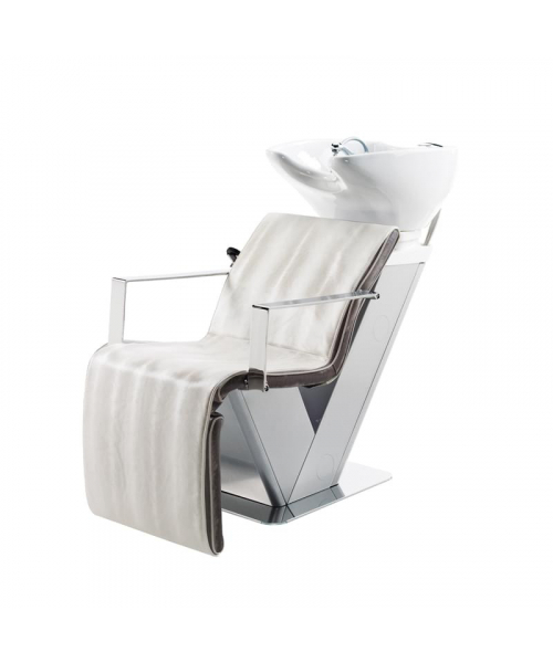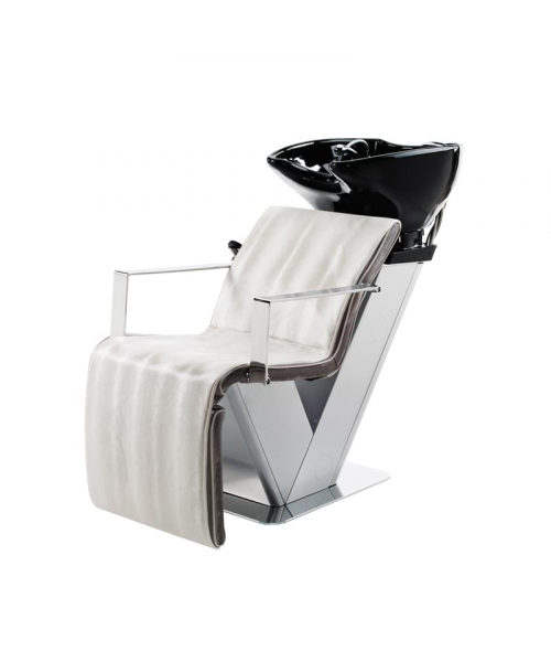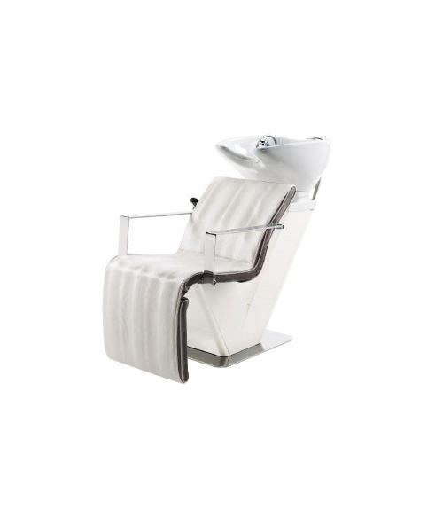 Мойка с креслом, имеет оцинкованный каркас белого или серебристо-серого цвета и основание из нержавеющей стали. Комплектуется средней керамической раковиной белого или чёрного цвета, с регулировкой угла наклона, комплектом смесителя с хромированной лейкой душа, мягкие элементы обтянуты искусственной кожей высшего качества, плоские хромированные подлокотники.