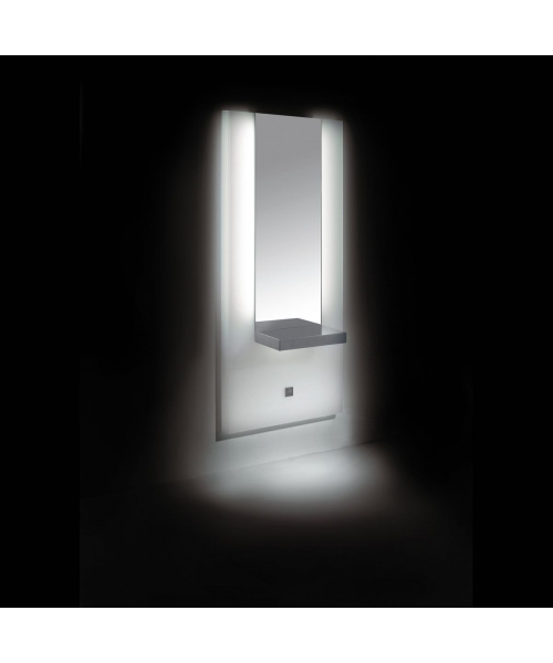 Зеркало парикмахерское "Time 2 Wall" - прямоугольной формы. Рама зеркала выполнена из пластика белого цвета. Зеркало оснащено подсветкой и металлической хромированной столешницей. Крепление к стене.
