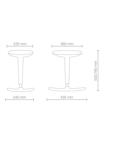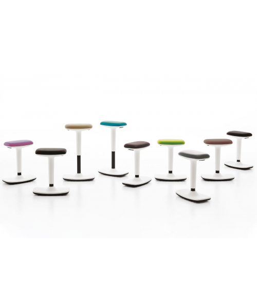 Стул мастера "Flex stool" - это качающийся табурет с сиденьем из пеноматериала, покрытым скай, доступный в 14 цветах. Он оснащен двойной кнопкой для регулировки высоты (ход 230 мм). Основание выполнено из антискрипной резины.