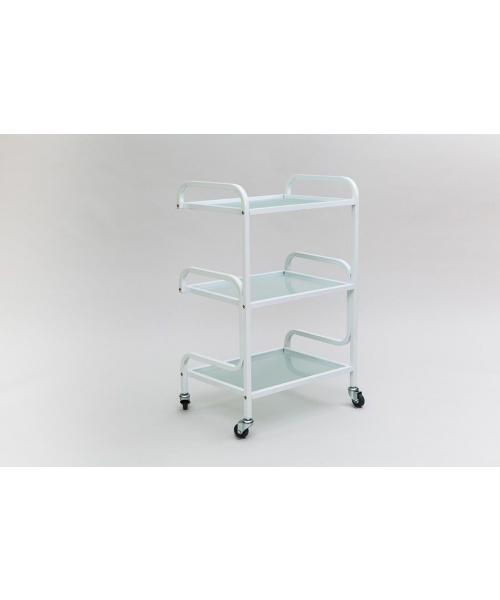 Косметологическая тележка модели "SD-3029" белого цвета с основанием на колесиках станет настоящим помощником в вашем кабинете. Конструкция имеет 3 стеклянных полки, которые предназначены для размещения косметики, оборудования и инструментов. Они способны выдержать нагрузку до 8 кг. Изделие покрыто порошковой краской, которая обеспечивает высокую степень надежности и износостойкости.
