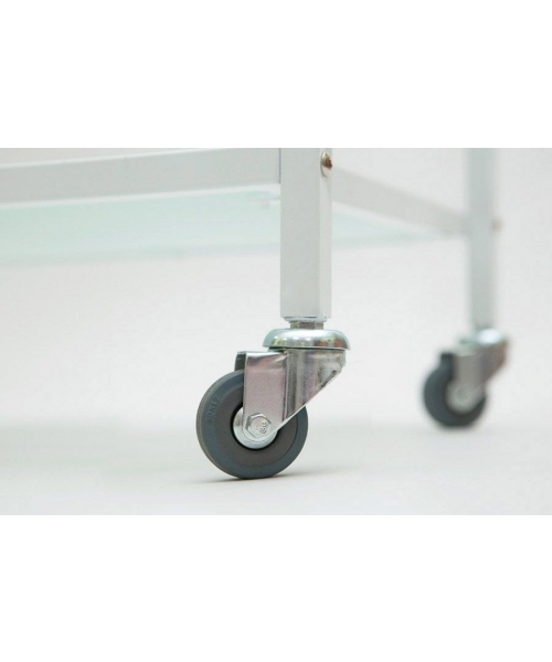 Тележка косметолога SD-3029 является эргономичной и компактной моделью. Колесики на ножках изделия изготовлены из резины, благодаря чему перемещение является легким и бесшумным. Сверху конструкция оснащена специальными ручками для перевозки. Каждая полка имеет защитные бортики, предотвращающие падение предметов.