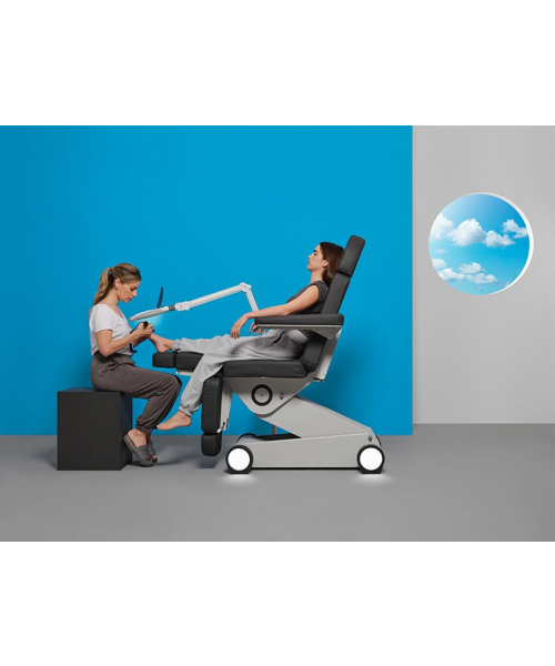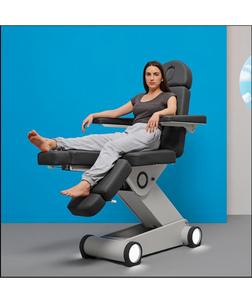 Педикюрное кресло "P155 EL PRINCIPE" 3 мотора - инновационное педикюрное кресло с 3-мя двигателями, максимальной устойчивостью и сверхкомпактным основанием. Двигатели позволяют легко регулировать спинку, высоту и положение угла наклона кресла с помощью пульта ручного управления, ножные секции регулируются пневматикой. Кресло P155 оснащено белой светодиодной подсветкой в основании. Разработано в Барселоне!