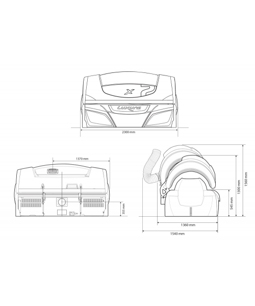 Размеры солярия (в закрытом виде): 2300 x 1300 x 1360 мм.